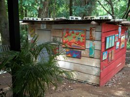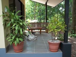 Peaceful and shady with lots of light and glass, beautiful jungle plants, wildlife (monkeys etc).