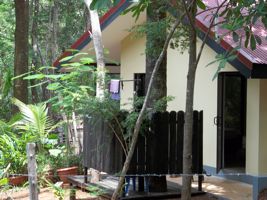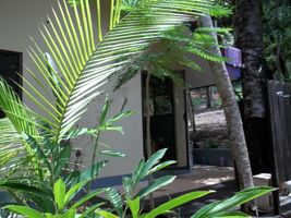 Peaceful and shady with lots of light and glass, beautiful jungle plants, wildlife (monkeys etc).